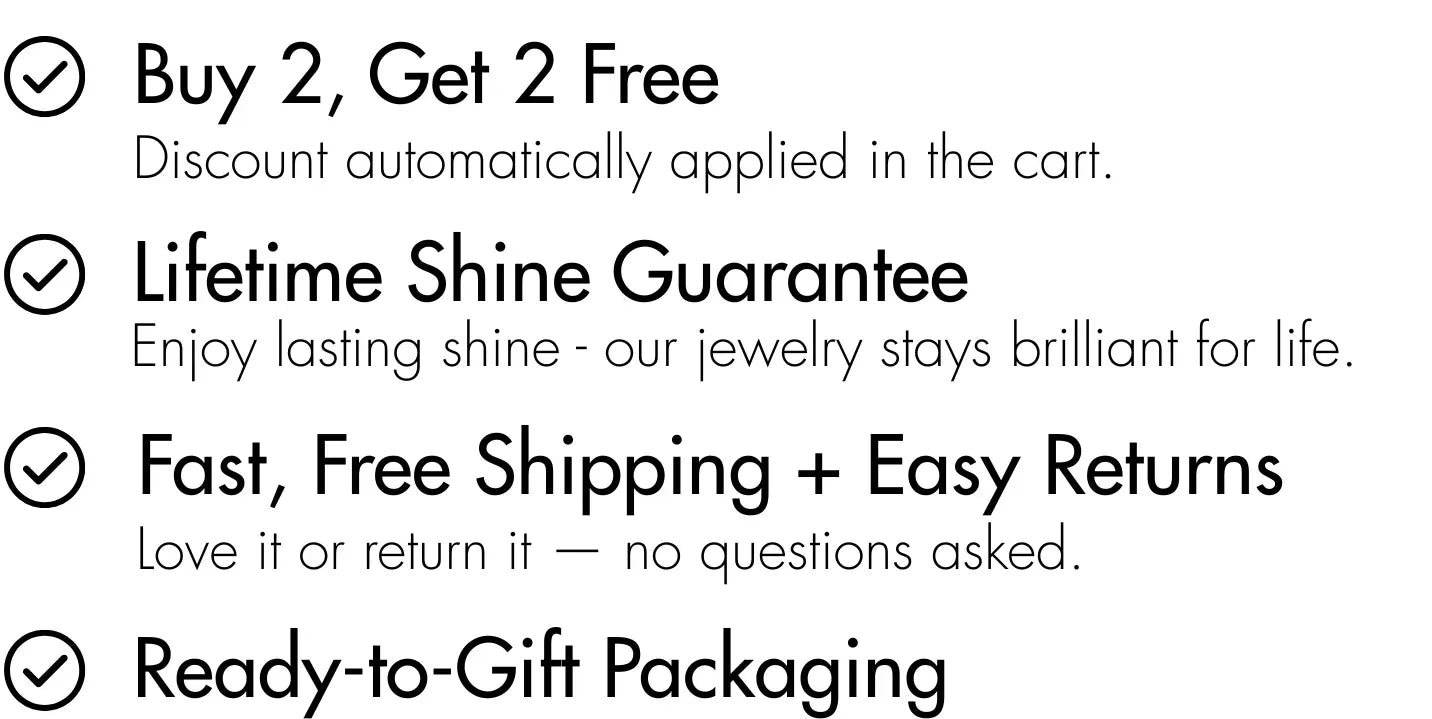 Our jewelry is expertly crafted from hypoallergenic stainless steel and solid sterling silver, then meticulously plated with 18k and 14k gold for a brilliant, long-lasting shine.